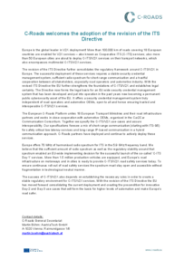 C-Roads welcomes the adoption of the revision of the ITS Directive